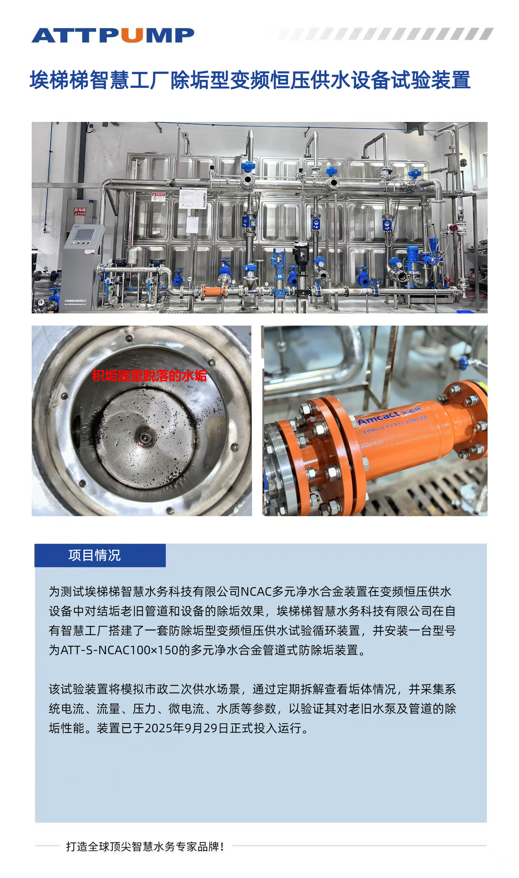 埃梯梯智慧工厂除垢型变频恒压供水设备试验装置